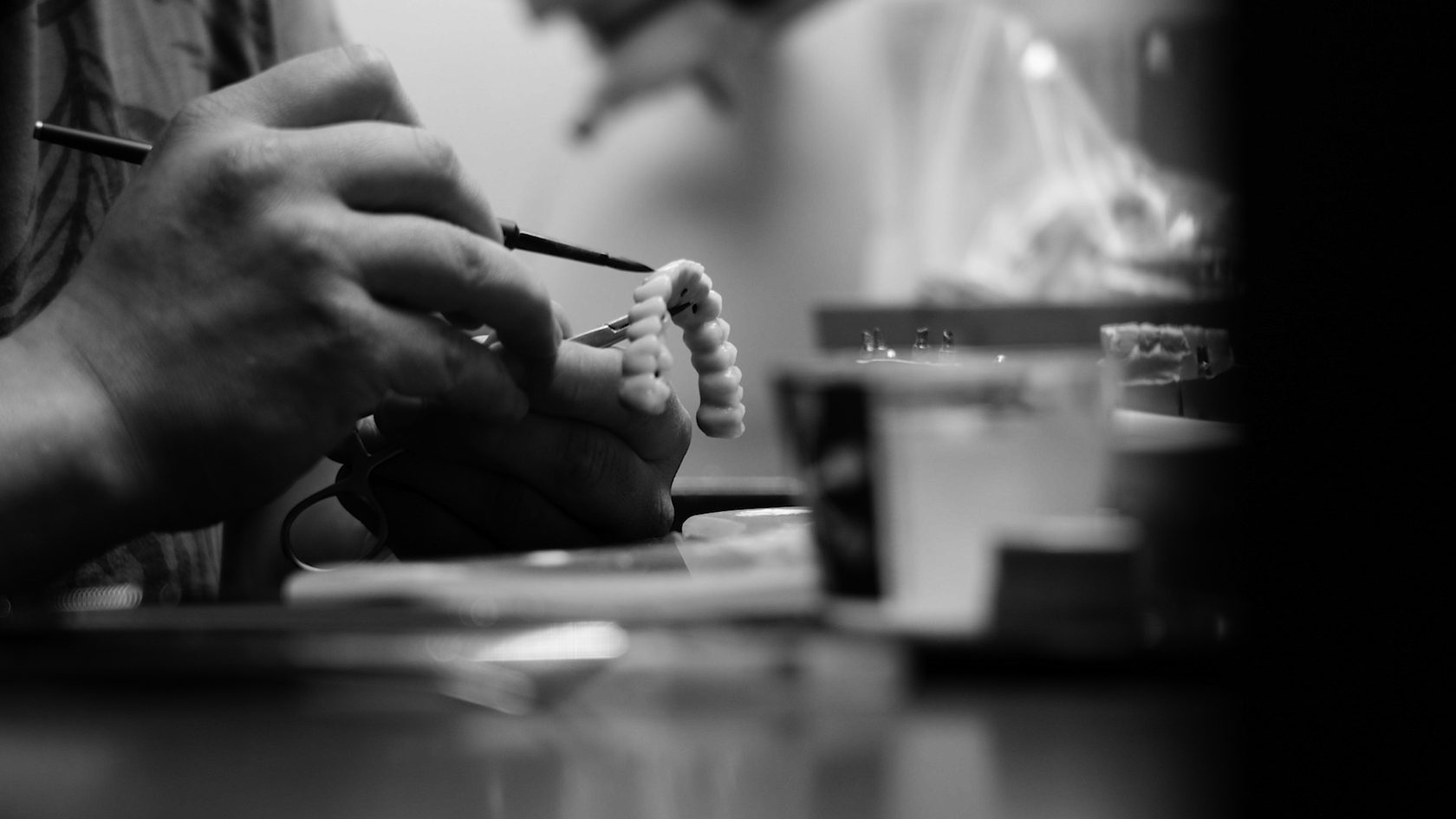 - фрезерований титан (з рівня імплантів, мультиюнітів) облицьований композитом та гарнітурними композитними зубами