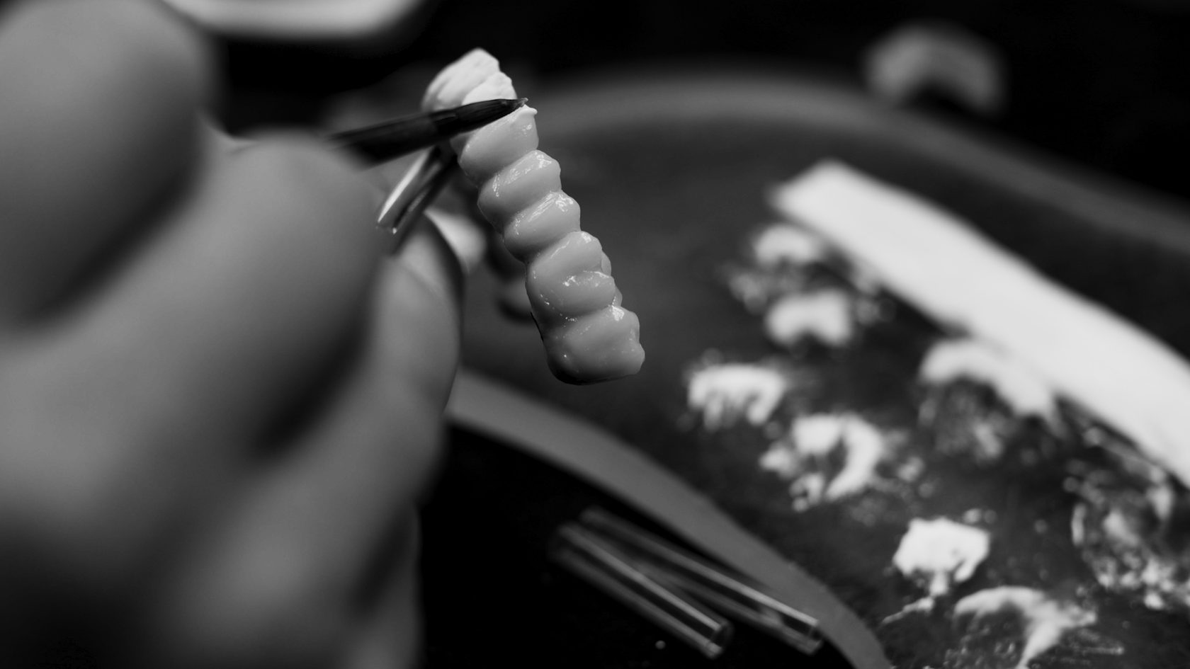 - фрезерований титан (з рівня імплантів, мультиюнітів) облицьований композитом та гарнітурними композитними зубами